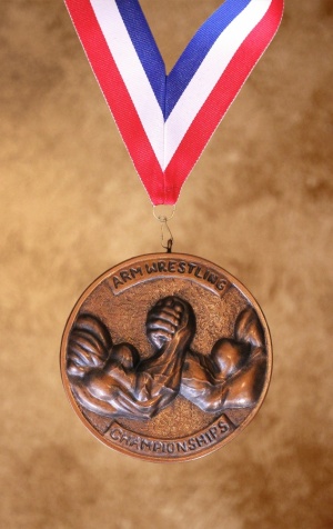 This Arm Wrestling award features a durable poly-resin medallion of two muscular arms wrestling each other that is inscribed with the words “Arm Wrestling Championships.”