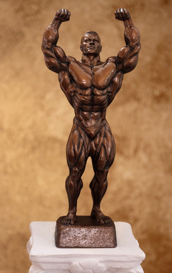 The Male Victory Bodybuilding Trophy is the perfect award for bodybuilding competition winners. This magnificent bodybuilding trophy is available in several different finishes, so you can choose the perfect one to match the aesthetic of your bodybuilding competition. Our trophies are handmade and featured in championships across the nation.  It’s also the perfect gift for yourself or to show appreciation for your favorite bodybuilder’s tireless efforts. Sculpture base pictured included in pricing.  Additional bases may be installed on the sculpture for an additional fee. View other sculpture bases. Retail discount on orders of 25+. Please login for a promoter discount on orders of 100+.